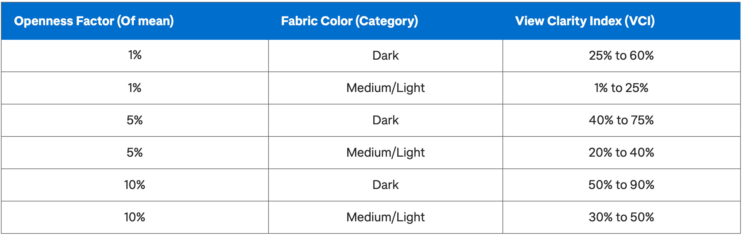 Direct Glare - the perception of uncomfortable brightness caused by high contrast from a light source, such as the sun. When daylighting, direct glare is most commonly experienced when there is direct view of the sun orb and the fabric's openness factor is too high for the application.